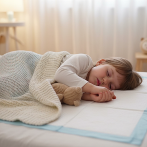 - Layering the Bed: Use a “sandwich” method with your bedwetting sheets for kids. Layer: Waterproof mattress protector > Bottom sheet > TBM Absorbent Pad > Second Bottom sheet. If they wet the bed, you just peel off the top layers and the bed is already made underneath.