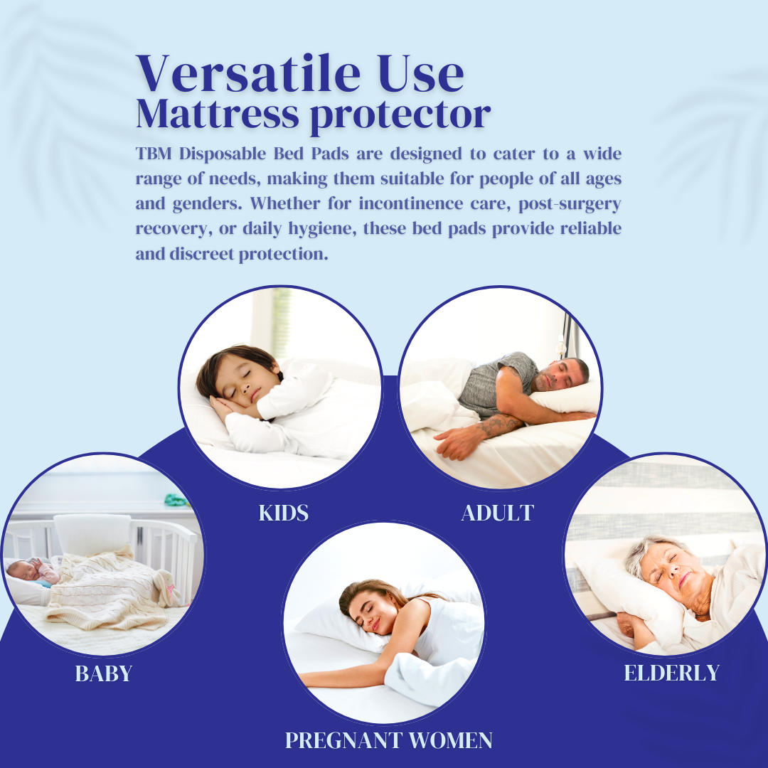 This underpad pad is perfect for toddler, elderly parents & women. Use it for child bed wetting or as an incontinence aid for adults. Disposable car mats to catch sand / mud. It can be used for mattress sheet cover as well as used in the bassinet and kids changing table as a changing pad cover or changing pad liner.